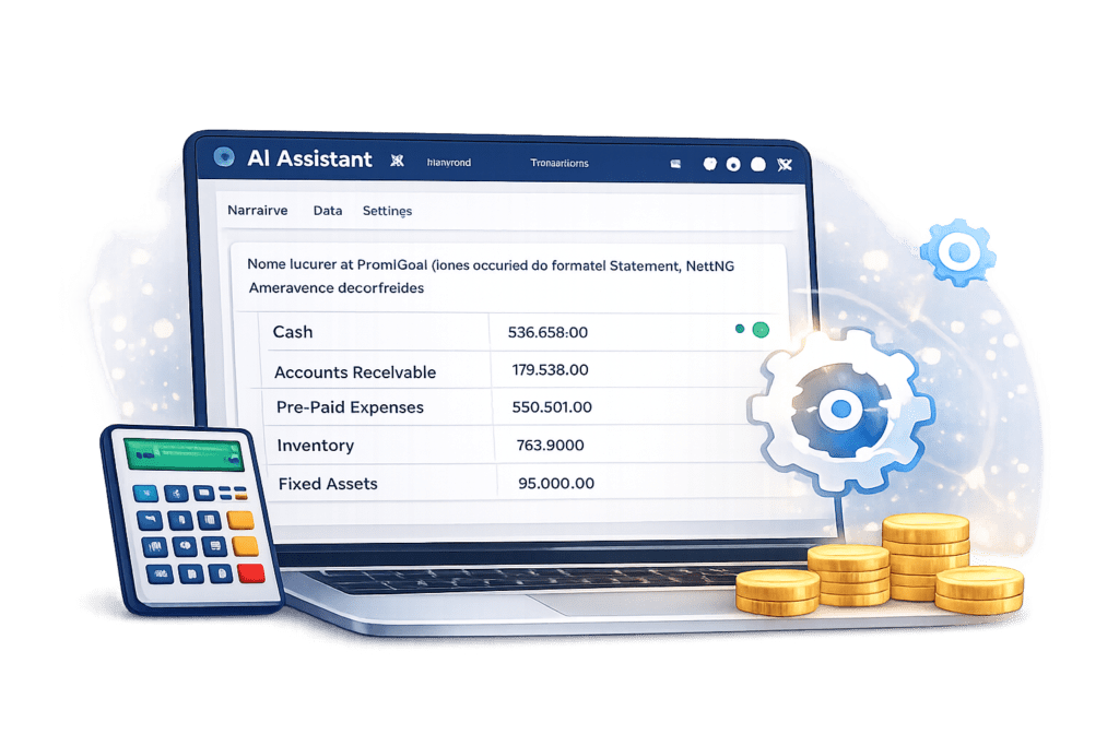Prepare trial balance, financial statements, and basic analysis with AI support.